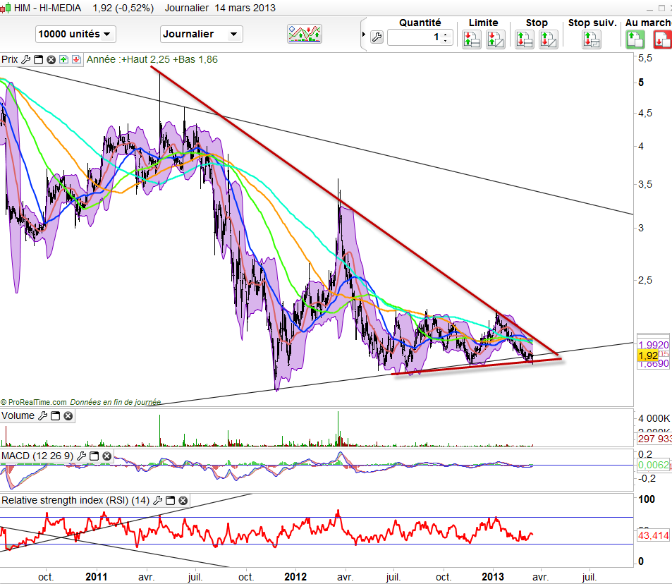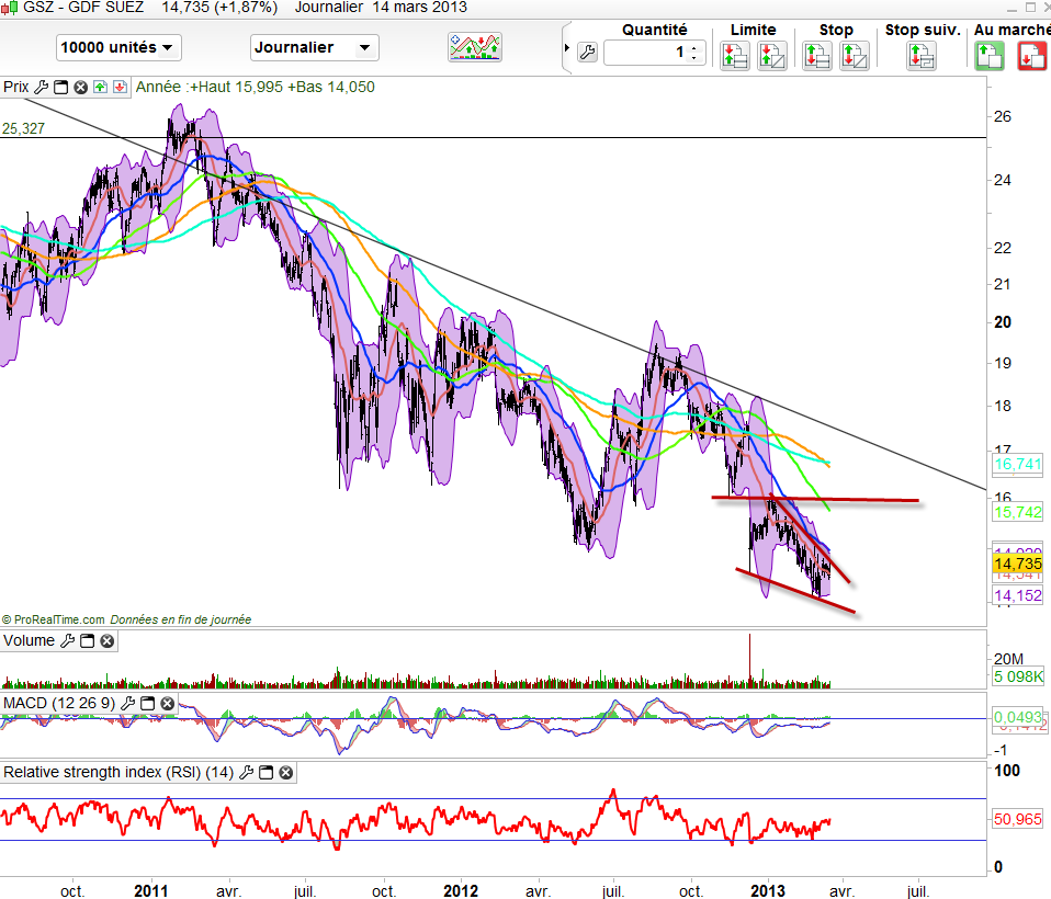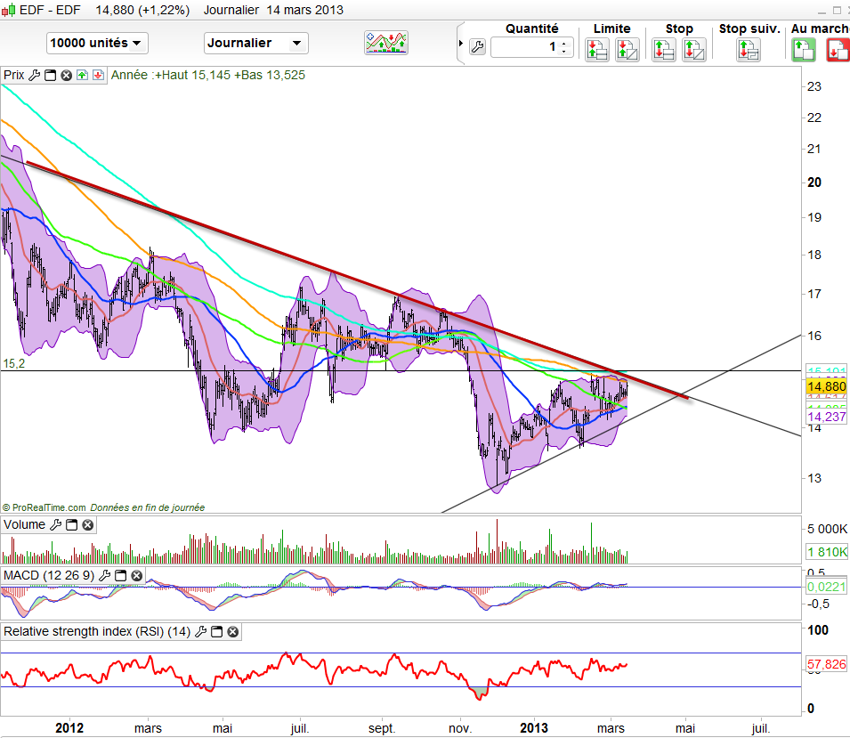 Alors que la bourse ne cesse de monter, les opportunités semblent de plus en rare. Afin de se protéger des prises de profits, il peut être intéressant d’arbitrer son portefeuille vers des valeurs qui n’ont pas encore pleinement profité de l’embellie généralisée des marchés. Notamment, les valeurs énergétiques comme GDF Suez ou encore EDf et aussi Hi media, une petite capitalisations au potentiel de rebond auquel je crois beaucoup. Mais pour hi-media il convient d’éviter d’anticiper de trop mais de se la garder sous l’oeil dans vos watch list respectives.