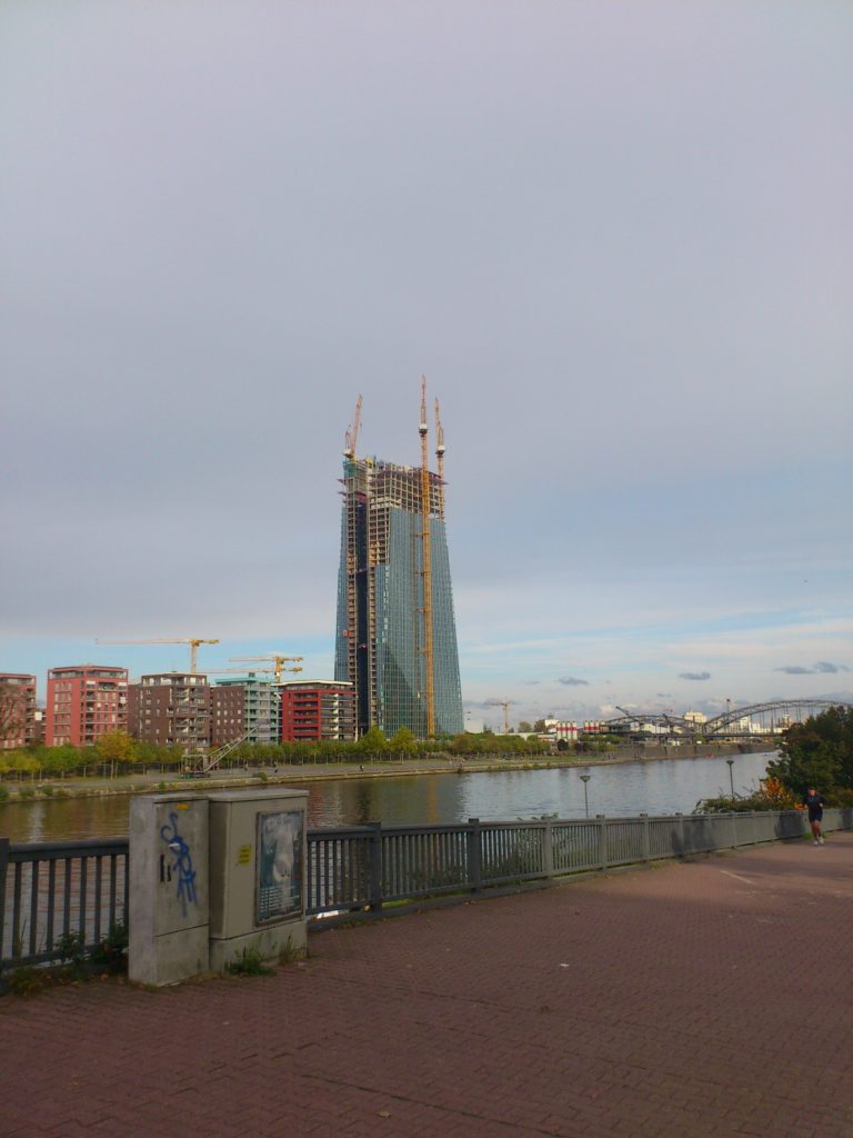Comme vous avez pu le constater chers graphs j’étais en déplacement pour un long weekend Outre Rhin, à Francfort. Je ne vous ai pas oublié et je vous propose donc de découvrir ou vous rappeler de bons souvenir si vous connaissez déjà Francfort. Voici quelques clichés de la cité. Et comme vous pourrez le constater, là bas, c’est déjà l’hiver ! Et la BCE construit un nouveau gratte ciel pour ses opérations…