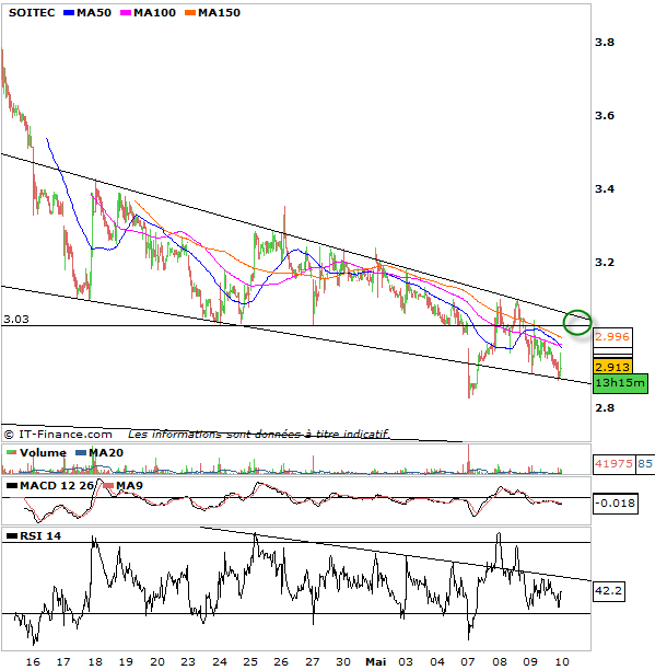 Soitec : achat sur débordement toujours des 3,03 euros.