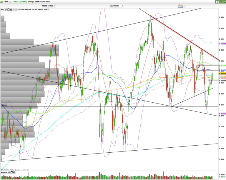 Pour le moment, il faut donc continuer de parler de cette hausse comme d’un rebond. En effet il faudra franchir la zone 5430-5450 pour se mettre dans des dispositions de rompre par le haut et confirmer la relance de la tendance haussière. Voilà qui prendrait à revers bien des vendeurs de Krach boursier.