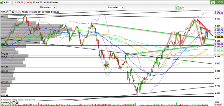 Dans ces conditions le CAC 40 n’a donc pas tenu 5400 points. pour venir rejoindre la zone des 5330-5350. C’était la zone important et donc c’était important de la défendre et de clôturer au-dessus. C’est chose faite, et donc ce rebond, peut donc vivre un autre jour.