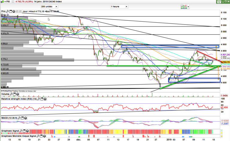 Je vous propose ce soir un graphique en 1h du cac 40 pour zoomer sur les différents niveaux importants