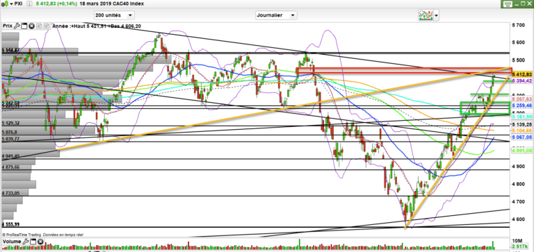 On n’aura une consolidation que sous 5370 points et le gros support visé alors sera 5315 points. A ce stade, aussi haut le CAC 40 soit-il, on ne peut anticiper plus qu’une consolidation départ sous 5370 points.