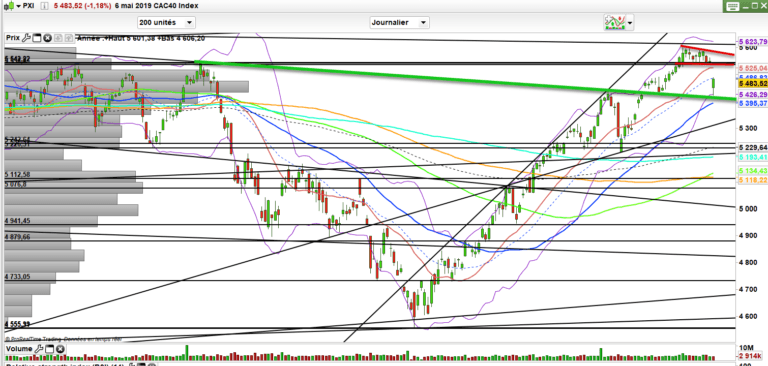 Et ce sera donc tout le boulot à faire ces prochaines séances. Car si ce rebond technique est stoppé dans la zone des 5500-5530 alors on entamera une phase de congestion dont l’issue nous donnera la tendance à privilégier pour la suite. Et ce n’est que la cassure baissière qui lancera les hostilités, les vraies.