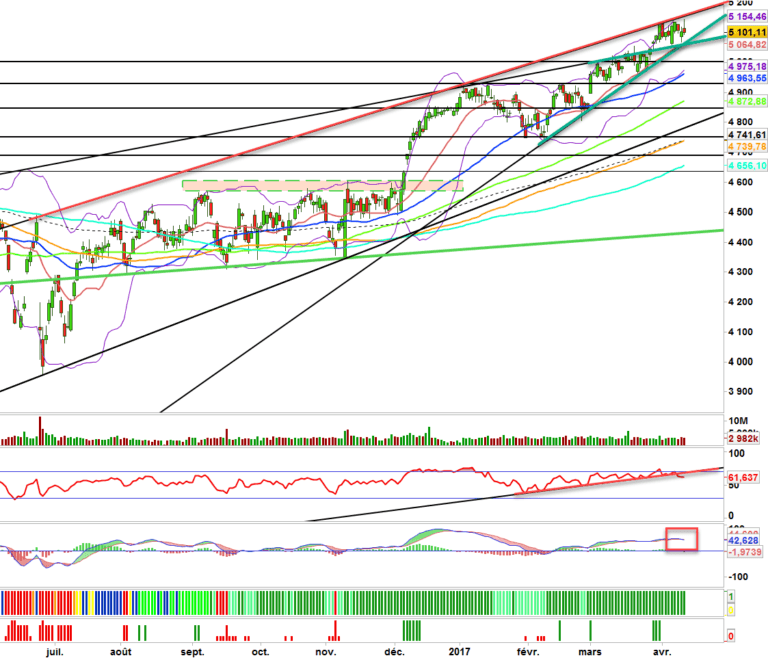 La zone 5030-5050 reste une zone importante de support à rompre avant d’entrevoir les 4980.