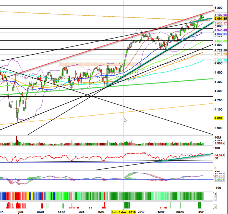 ce n’est que si on venait à rompre 5060-5070 par le bas, que la situation se dégraderait pour viser 5035 points. 5035 est pour moi pivot. Au-dessus cela reste haussier malgré la mise en place d’une conso. En dessous, on attaque une correction.