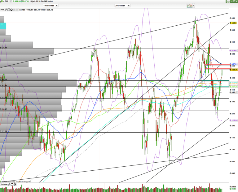 Je reste positif au-dessus des 5380. résistance 5440-5460 points. Ce n’est que sous 5380 et à fortiori sous 5350 que les vendeurs reprendraient la main et nous replongeraient dans le doute.