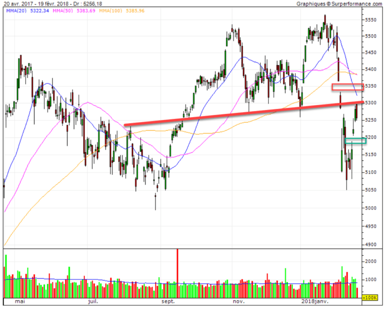 Voilà ce rebond donc coincé entre 5170 et 5330 points