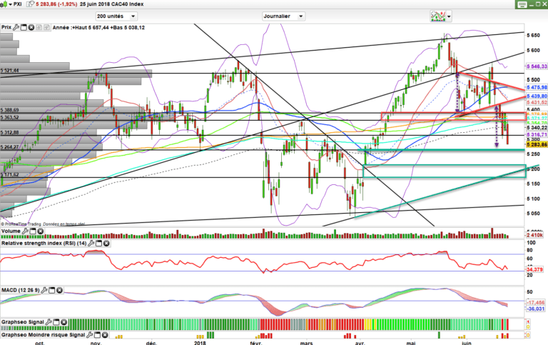 Il faudra encore s’armer de patience avant de pouvoir confirmer les supports et parler d’une volonté de rebond. Chaque séance que l’on va passer sous les 5360 va maintenant laisser de plus en plus de place au doute et donc accroître la main des vendeurs.
