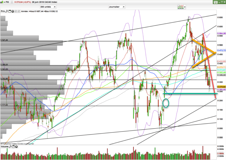 En tout cas devant ce rebond technique avorté ce jour et sous les 5300-5310 points, ça reste baissier. Et sous les 5240-5250 la correction pourrait s’accélérer en direction des 5200 à 5170.