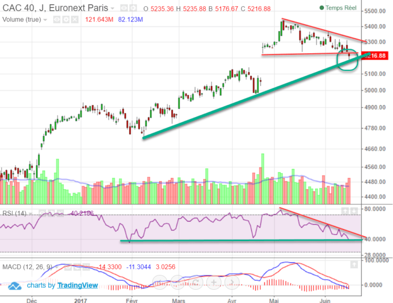Comme on avait pu en parler, la FED a donc douchée le CAC 40 avec l’ouverture d’un gap baissier, la cassure des 5230 points et l’objectif du support des 5180 testé et validé. L’avantage d’une tendance en bourse, c’est que c’est tout de même prévisible quand on sait reconnaître les indications de Monsieur Marché.