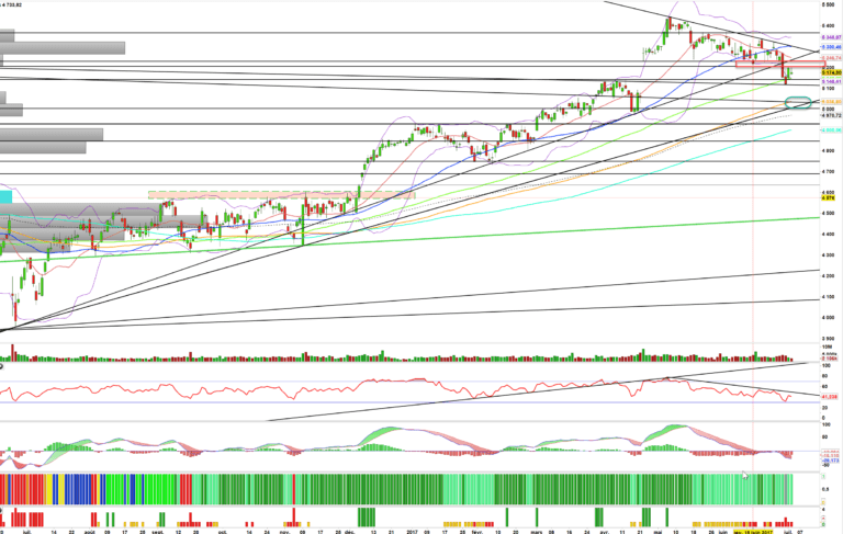 Il faut bien se dire que le paradigme change sur le CAC 40. Oui on reste dans une tendance long terme haussière.Mais à court terme dans une correction dont le potentiel baissier n’est peut être pas encore atteint.