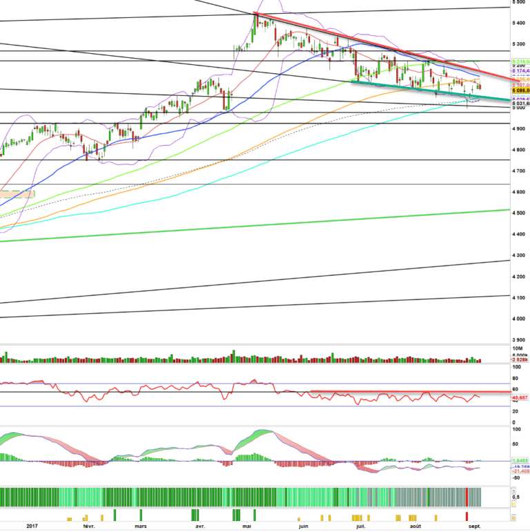 Le CAC 40 continue son surplace dans son biseau descendant. Encore un peu de patience, nous arrivons à la fin de cette figure.