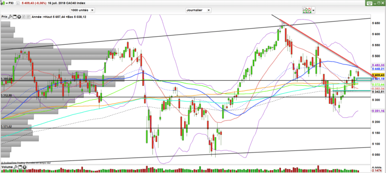 Le CAC 40 a tout de même su conserver l’essentiel. A savoir les 5400 points. Au-dessus on demeure en rebond haussier. Mais le gros du boulot ne change pas. Il faudra rompre 5440 points pour s’offrir des prolongations et relancer la hausse.
