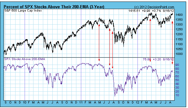 Une bonne façon de savoir qu’elle est la force d’un rallye haussier est donc de déterminer combien de valeurs évoluent au-dessus de leur moyenne mobile à 200 jours et supportent donc cette hausse.