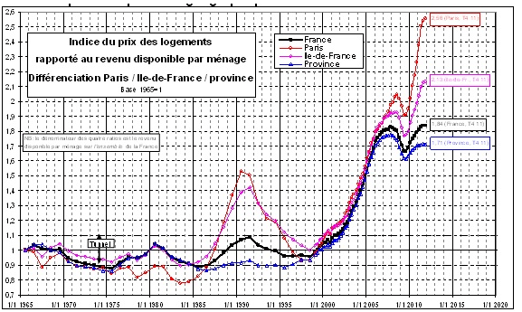 Regardons pour cela les courbes de Friggit pour décortiquer les prix immobiliers en France