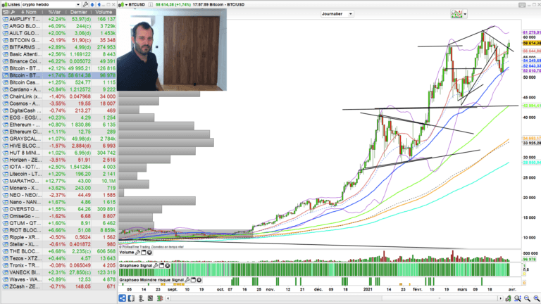 On en parle justement et on entrevoie les niveaux pivots sur le bitcoin, les crypto et les actions liées à la blockchain