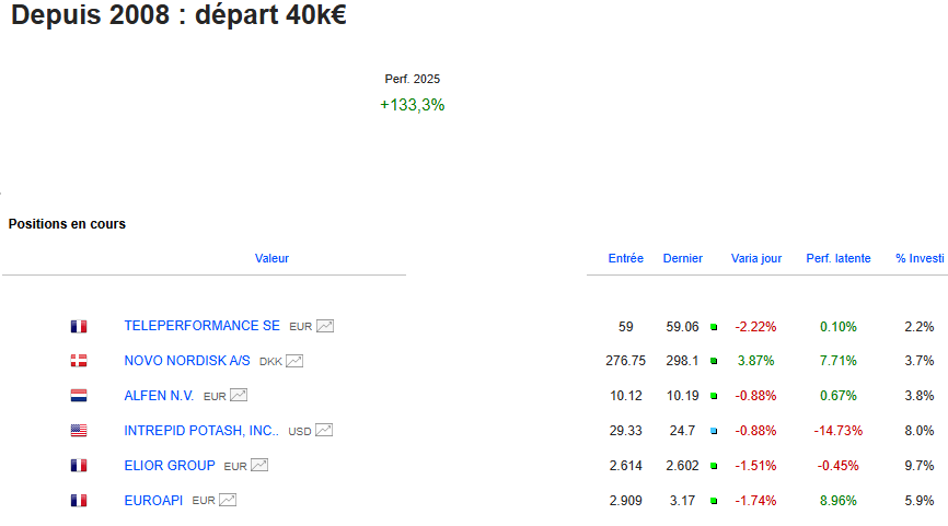 Pas de regrets, je vais continuer de construire le portefeuille pour début 2026 et certainement partir sur un retrait du capital que j’avais début 2025 pour n’investir plus que les gains et revenir à des tailles avec lesquelles je suis plus à l’aise. Depuis un mois, je réfléchis trop à ce que les montants représentent.