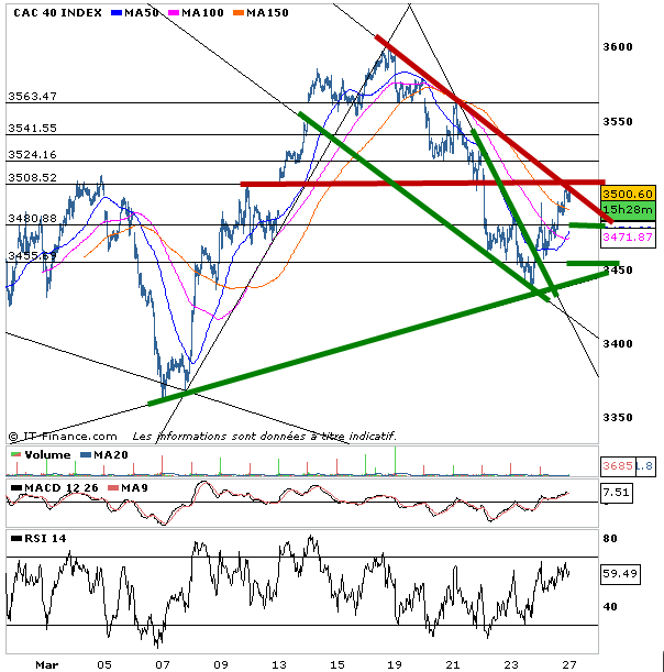 On passera en opinion haussière au-dessus des 3508 points. Les objectifs seront 3524-3540-3563 points