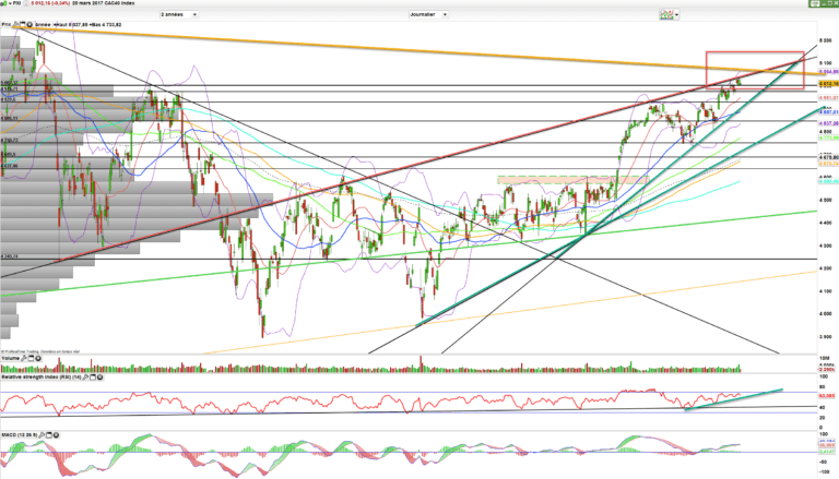 Mais tant que le CAC 40 tiendra son gap haussier, toute consolidation du cac 40 ne sera pas interprétée comme un essoufflement de la tendance.
