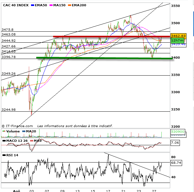 Niveau support : 3445-3427-3414-3396.
