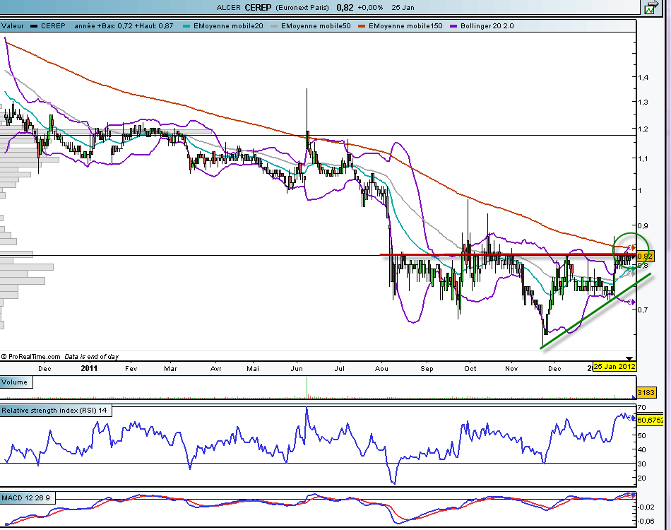 Toujours positif sur l’action Cerep qui n’est plus très loin de valider finalement son retournement de tendance. A suivre très prochainement. un retour des volumes ferait du bien.