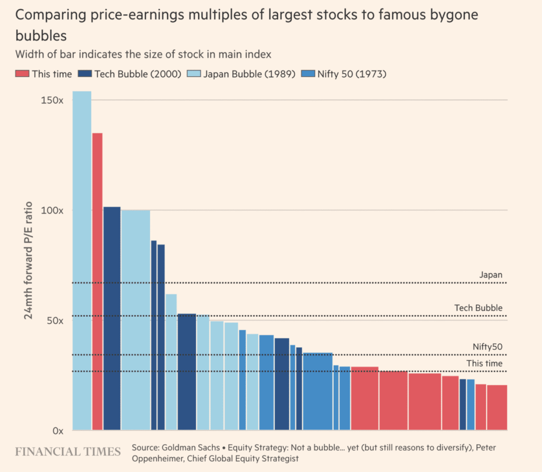 Les marchés sont survalorisés et il y’a des titres et des poches du marchés qui sont en bulle. Mais l’ensemble du marché n’est pas en bulle. Et historiquement parlant, cette bulle peut devenir encore bien plus grosse à l’avenir avant d’imploser.