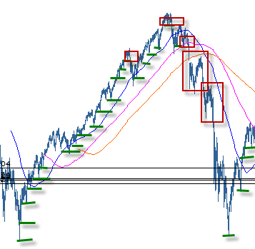 Un renversement de tendance met du temps à se construire. Mais vous savez que vous n’avez plus affaire à un simple retracement, lorsque le point pivot est cassé, que le retracement est supérieur aux 61% de Fibo, et que l’ancien support du trend haussier est cassé. Il est temps dès lors d’éviter cela :