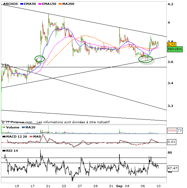 Dans l’exemple ci-dessous le gap haussier n’a jamais été refermé. il a donné le point de départ à une très forte tendance haussière de plusieurs mois. Vous remarquerez que le gap haussier s’est fait au-dessus des moyennes mobiles et avec un pic des volumes. Le gap seul ne vaut donc pas grand chose mais si volumes et moyennes mobiles concordent, à eux trois ils donnent un signal fort et durable.