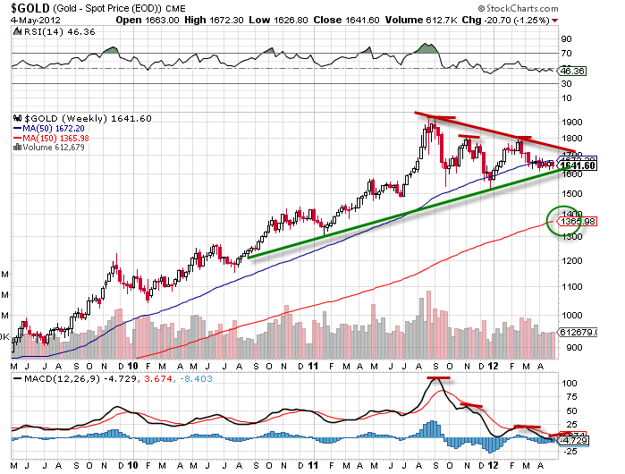 Fly24 a parfaitement analysé la parité euro dollar, qui je pense se trouve également à un tournant. je tiens également à ajouter un graphique sur l’or, également à un tournant. Décidément, les investisseurs semble bien indécis, et on semble proche de décisions importantes, de rotation des portefeuilles et de mise en place de tendances long terme. alors bull market sur les actions et bear sur l’or et l’euro, ou le contraire ? à moins que les investisseurs se dégagent pour se réfugier sur les obligations ? Dans tous les cas, faîtes vous une opinion, mais soyez prêts à en changer rapidement si ça tourne pas dans votre sens.