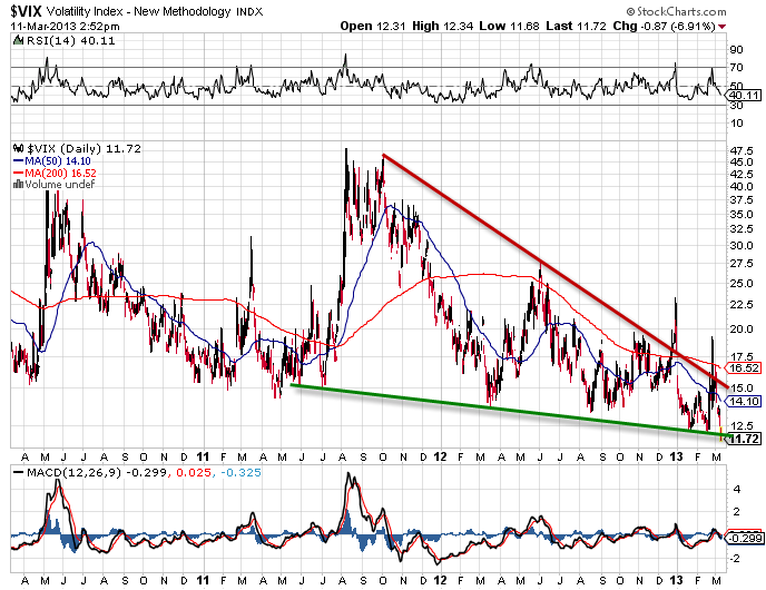 Je ne sais pas si le VIX est encore important aux yeux du marché. Ce qui est certain, c’est que nous nous retrouvons à un niveau très bas. preuve de l’optimisme des marchés. Ce que l’on sait également, c’est que sur de tels niveaux, il convient de se méfier. Certes, cela ne nous aide pas pour en connaître le timing. Mais il y a fort à parier que seule une mauvaise news, inattendue pourra inverser la tendance forte du marché en cours. Et cela, coïnciderait avec un scénario de biseau descendant sur le vix avec break-up haussier. Alors j’attends vos propositions sur qu’est-ce que pourrait être cette mauvaise nouvelle dans les cartons et à laquelle les marchés ne s’attendent pas ? où ne veulent pas encore voir ?