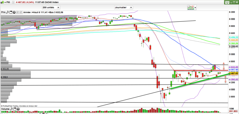 Niveau pivot graphseo à 4430. Au-dessus on reste en attentisme mais plutôt positif, en dessous, on redevient prudent sur la suite. Au-dessus des 4480, on aurait une volonté de rebond supplémentaire. Mais on sent bien que ça commence à être l’attentisme.