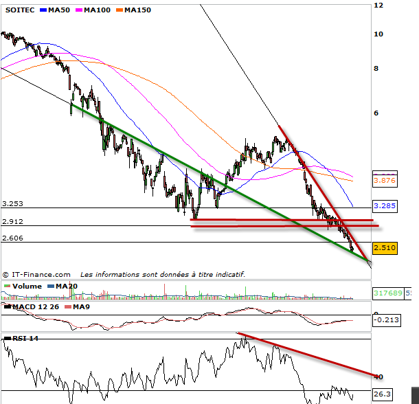 Bref en attendant observez le passage des 2,63 euros qui pourrait ouvrir la voie aux 2,90-3 euros voir 3,18 en extension. Il y a bien la résistance des 3,24-3,33 qui est également intéressante mais ça paraît un peu gourmand encore pour le moment.