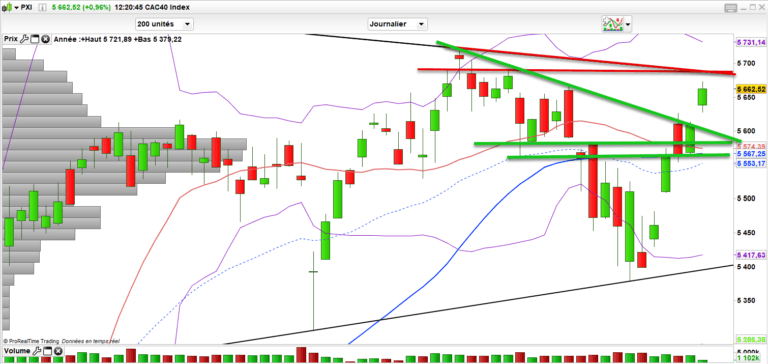 En attendant le CAC 40 s’est extirpé de sa résistance des 5610 par la plus belle des manières; Un gap haussier pour aller fermer le gap de mi janvier qui avait lancé une phase de flottement. Comme hier donc, les acheteurs ont prouvé leur force et retourné le marché qui cependant reste dans une figure de congestion de médiane support 5550 points. Au-dessus ras, en dessous, on reparle conso.