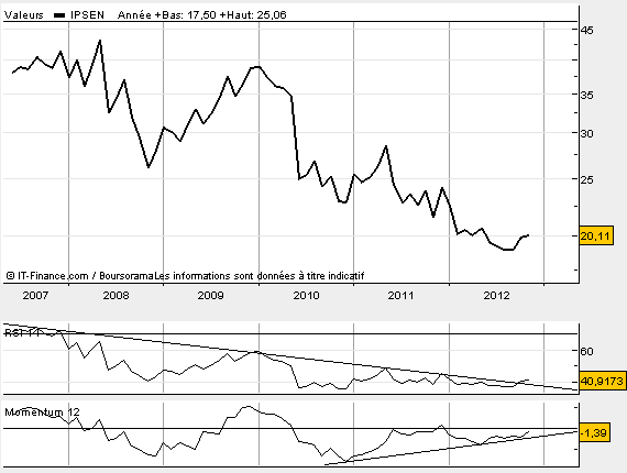 Pour résumer en plus de se retourner à la hausse pour le long terme Ipsen, qui se situe toujours non loin de ses plus bas historiques, propose un coupon non négligeable de 0.80€ soit 4.35% de rendement au cours actuel. Un belle action en fond de portefeuille pour un investisseur long terme.