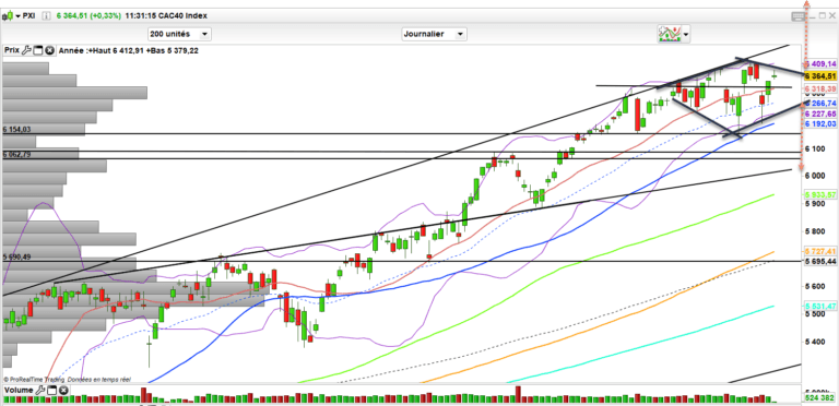 Ainsi graphiquement rien ne change, le CAC 40 demeure en hausse saccadée ce qui veut dire qu’il faut s’habituer au zig zag volatil sans pour autant qu’une tendance mûre se dégage. Je garde un biais prudent et pour moi la fatigue est bien à l’Å“uvre.