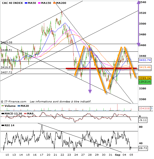 Par contre sous 3380 et à fortiori sous 3360, lâchez vos derniers espoirs haussiers.