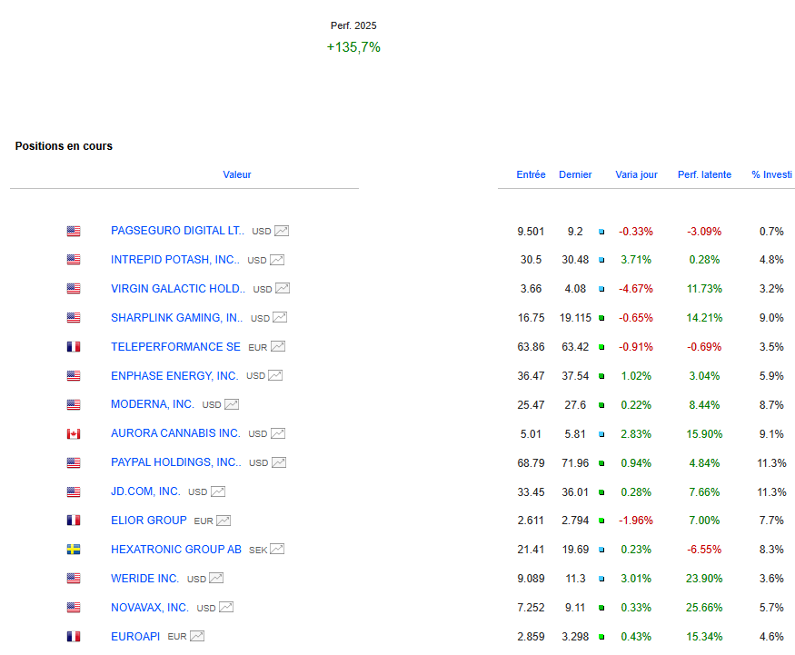 PS: Tous mes investissements sont partagés en temps réel sur L'Académie des Graphs. Le portefeuille représente mes convictions personnelles consolidées (de mes différents courtiers) et n'est pas une incitation à l'achat ni à la vente. La performance en cours inclus les gains ou moins values latentes et l'impact du change sur les actions étrangères. Performance 2024: +41%; 2023: +38%; 2022: +46%; 2021: +122%; 2020: +121%; 2019: +79%; 2018: +21%; 2017: +24%; 2016: +12%; 2015: +45%; 2014: +30%; 2013:+72%, 2012:+9%, 2011:-11%... Clique-ici pour découvrir l'Académie des Graphs où je t'accompagne au quotidien, partage mes positions et portefeuilles dynamique et long terme en temps réel.