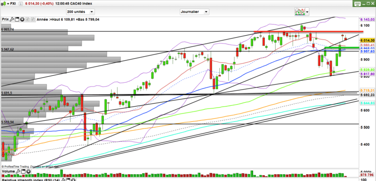 En attendant, graphiquement, le CAC 40 est haussier au-dessus de la zone des 5980-6010 points. Les 6065 font barrage et en dessous, je me permettrait de rester au final neutre sur mon sentiment propre, en attente.