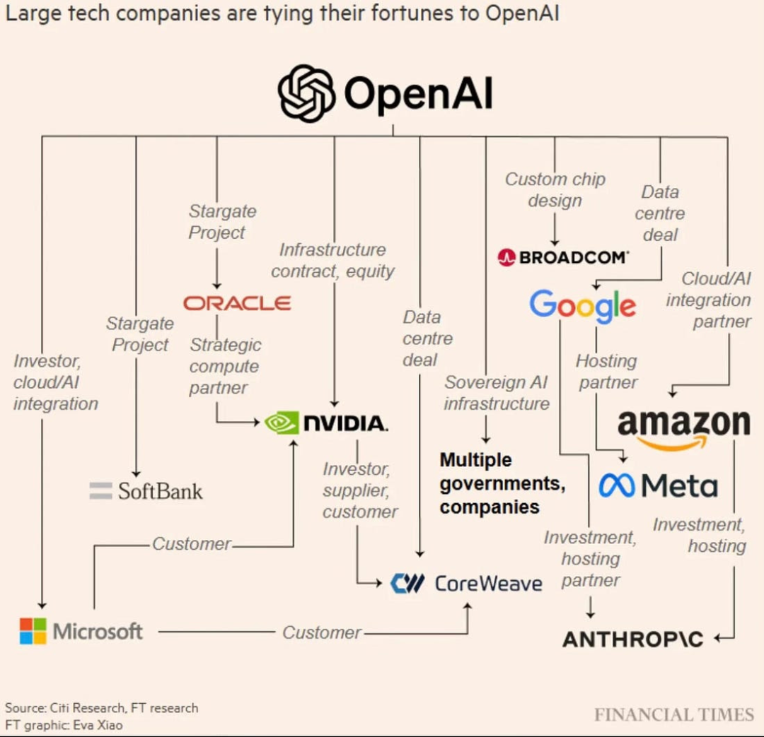 Le problème c’est que OPEn AI a lié des partenariats et promesses d’investissements pharaoniques ces prochaines années avec tous les grands groupes. Dont notamment Oracle. Qui s’endette massivement pour répondre à cette demande future.