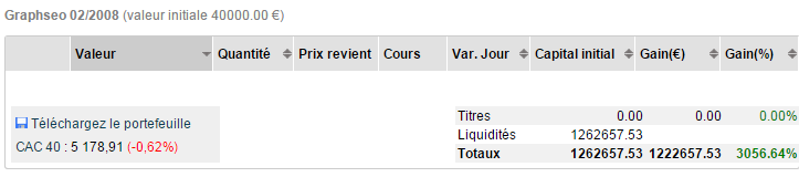 Forcément c’est lorsque je solde mes ventes à découvert que le marché décide de s’offrir une séance baissière. Bon j’en ai tout de même bien profité en intraday car maintenant j’ai le doute à chaque fois que je prends une vad de me faire renverser par les acheteurs rapidement. Au final, j’ai donc pris à la cassure baissière des 5193 points sur CAC 40 des vad sur le secteur automobile avec Renault, Peugeot et faurecia et une vad sur Cap gemini. J’ai racheté au cours de l’après midi la moitié de mes positions et j’ai soldé le reste en fin de séance sur la peur de me faire retourner par un gap. Bien m’en a pris apparemment à la vue des US et des futures CAC 40. Je suis tout de même impressionné par cette hausse permanente. la correction n’e sera que plus violente mais je dois bien avouer que le timing est extrêmement délicat à trouver. Du coup je rachète rapidement et ça me vaudra très certainement de ne pas être en position quand le top départ sera donné. Donc liquide ce soir et prêt à reprendre des positions en vad tant que l’on reste sous 5193 points. Attention, fin de mois SRD lundi 27 avril.