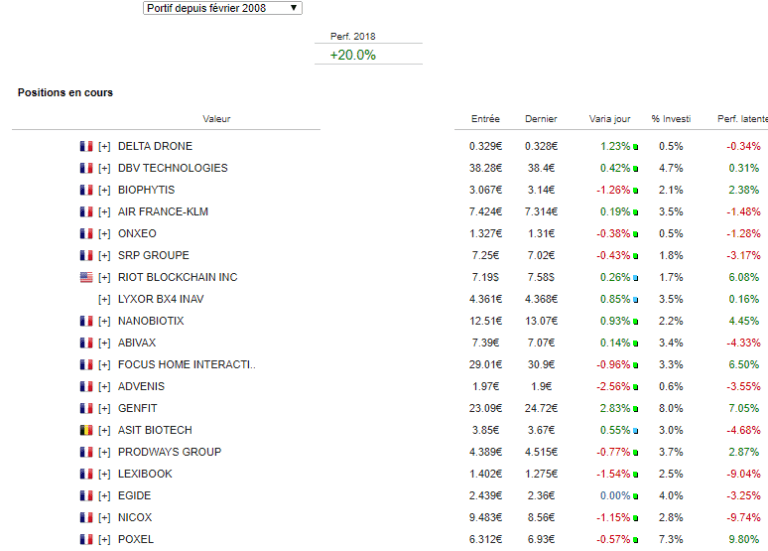 Dans ces conditions je conserve mes portefeuilles. je me suis contenté de prendre mes profits sur la poussée haussière de Agfa. Ici je liquide pour mieux me recentrer sur mes lignes et rester réactif et prudent sur la suite. J’ai également vendu plus de la moitié de ma ligne sur Air france alors que le titre est revenu sur mon prix de revient après mon accumulation hier. Le trade est loin d’être positif mais on va dire que j’ai un peu sauver les meubles même si on ne parle pas non plus d’une position majeure puisque je rappelle que mon exposition sur le titre restait sous contrôle.