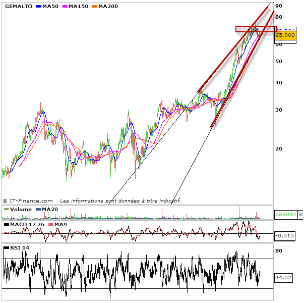 je tenais ce soir à vous présenter un éventail de graphiques d’actions majeures de la bourse de Paris pour démontrer que la majorité si ce n’est toutes ces actions sont dans des configurations d’essoufflement haussier ou de top de marché. Je conseil donc de redoubler de prudence face à toutes ces figures qui semblent annoncer un risk reward dorénavant nettement en faveur des baissiers et d’une consolidation du mouvement haussier de ces 6 derniers mois. S’il ne faut pas croire que ce mouvement entamera un nouveau cycle baissier, il faut néanmoins se méfier d’un regain de volatilité sur les marchés lors de cette consolidation. A discuter ensemble selon vos avis et opinions en commentaire.