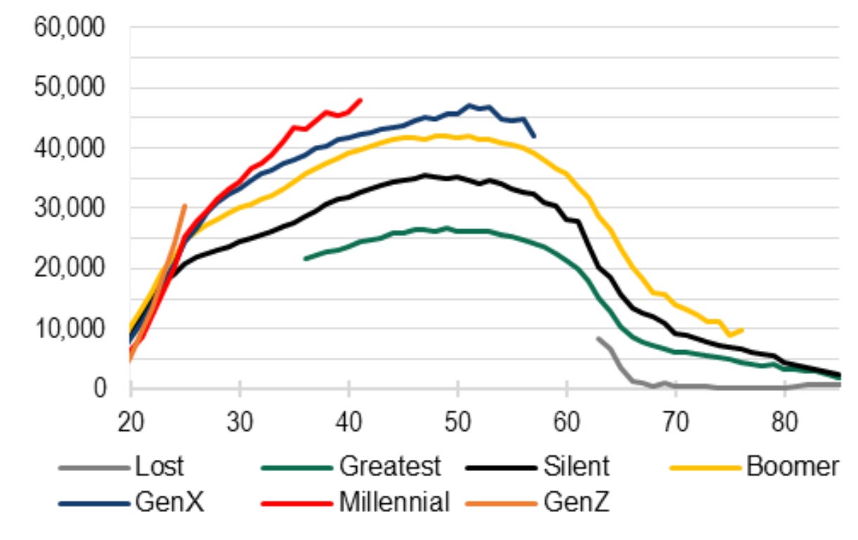 Alors je ne sais pas si c’est à cause du bitcoin et de la bourse, mais les jeunes générations ont plus d’argent que les précédentes génératons à un âge identique.