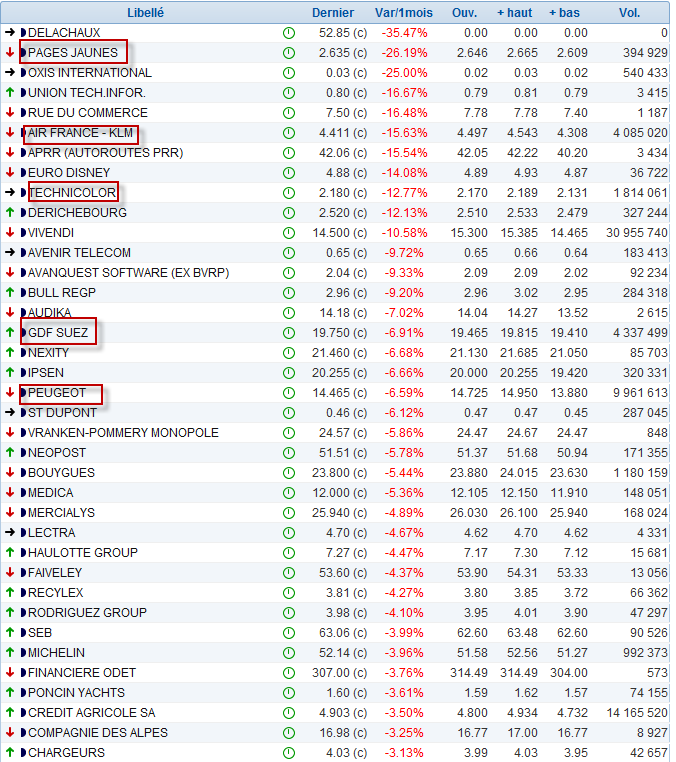 Les pires actions de février 2012