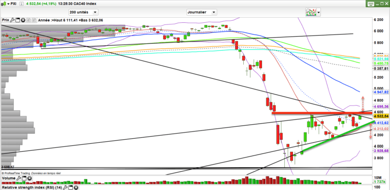 Donc cac, au-dessus des 4460 ras. En dessous, on commence à se dire qu’on a pricé le meilleur et qu’il faut souffler. Au-dessus des 4550, on a encore de la marge pour 4600-4620. C’est sur les marchés américains où l’on est dans le dur mais ils sont forts ces américains et ils poussent les vadeurs à se racheter ce qui aide le marché a encore plus monter. Encore une belle preuve de l’incompétence des gens en charge chez nous qui de toute évidence, n’ont jamais compris ce que c’était d’investir et la nécessité d’avoir une contrepartie, contrepartie toujours aidée par les vadeurs qui sont des acheteurs futurs quand le marché rebondit et qu’ils doivent sortir de leurs positions.