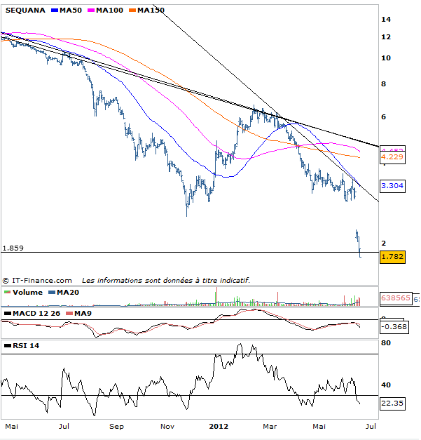 Opinion à l’achat spéculatif sur Sequana sur dépassement des 1,86 euros. on viserait 1,98 puis 2,20 euros. Attention augmentation de capital en cours jusqu’au 27 juin sur le titre, donc soit court terme et donc on solde avant, soit vous participez à l’AK pour un investissement plus long terme.