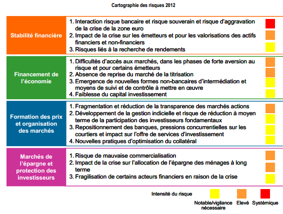 Les risques macro-économiques : toujours très élevés, ils dépendent de la consolidation de la zone euro et de la capacité des banques à faire face à la crise les difficultés d’accès aux marchés pour les entreprises dans un contexte de forte aversion au risque