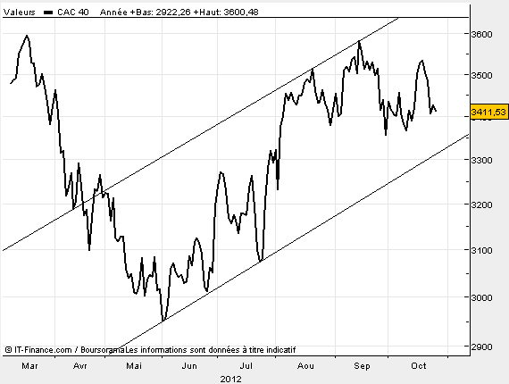 On est toujours dans un canal haussier, si à court terme on pourrait prendre appui sur la borne basse, je vise, pour ma part, à moyen terme une reprise haussière ayant pour objectif la borne haute. Après il sera temps d’envisager une sortie par le bas.