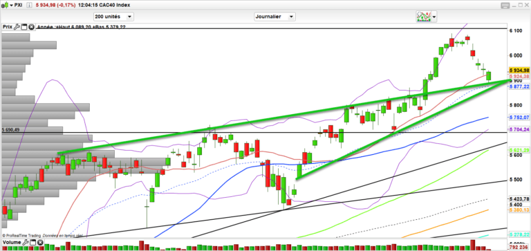 Au niveau du CAC 40, ras, on continue de consolider. Le cycliques doivent bien souffler. Le pangolin est de retour. On retrouve la zone de support 5870-5890, il serait bien de la tenir. on commence à y réagir, mais il faudra prouver la force du rebond. sous 5960 c’est du rebond technique. Mais pas de quoi paniquer, on reprend notre souffle, c’est sain et ras je dirai à moyen terme au-dessus des 5750-5870.